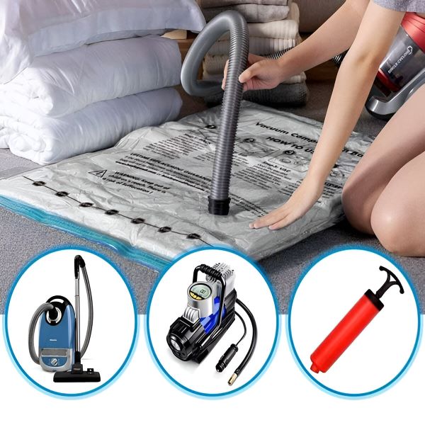 Dochází vám úložný prostor? Ušetřete až 80 % místa s našimi vakuovými úložnými pytli! Jednoduše zabalte – uzavřete – a vysajte vzduch, abyste zmenšili objemné předměty jako oblečení, deky a ložní prádlo. Více místa, méně nepořádku!
