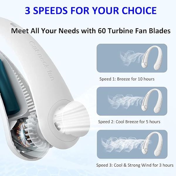 Tento vějíř na krk, vyrobený z materiálu ABS a měkkého silikonu, má 360° flexibilní rotační konstrukci,