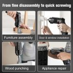 🔧 Flexibilní hřídel pro těsná místa – dosáhne do úhlů a rohů, kam se běžný šroubovák nedostane, ideální pro montáž nábytku, opravy spotřebičů a domácí údržbu