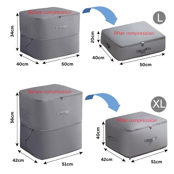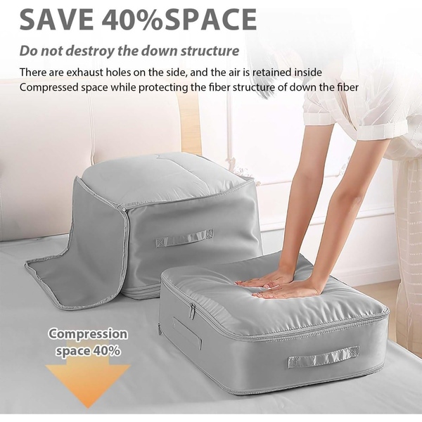 Bez námahy stlačíte oblečení, přikrývky a další věci bez vysávání, čímž uvolníte spoustu místa navíc v kufru nebo ve skříni.
